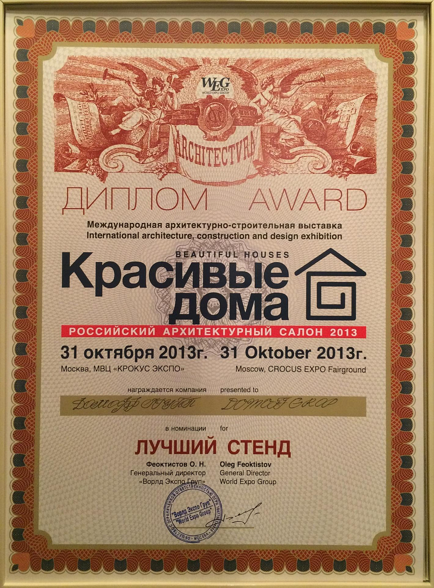 В 2011 году стала обладателем Международной Архитектурной Премии в категории «Лучший загородный дом».